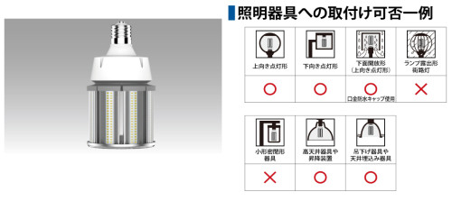 消費電力: 80 W 入力電圧: AC100~240 V 対応口金: E39 サイズ: Φ130×247 mm 質量: 1,330 g 設計寿命: 50,000 h 色温度: L:3,000 K / N:5,000 K 演色性: Ra80 使用温度: -30~45 ℃ 保護等級: IP64(口金部分除く) 全光束参考値: L:11,040 lm / N:12,000 lm 電源:内蔵電源 密閉器具:対応 製品保証: 5年 温度センサー:有